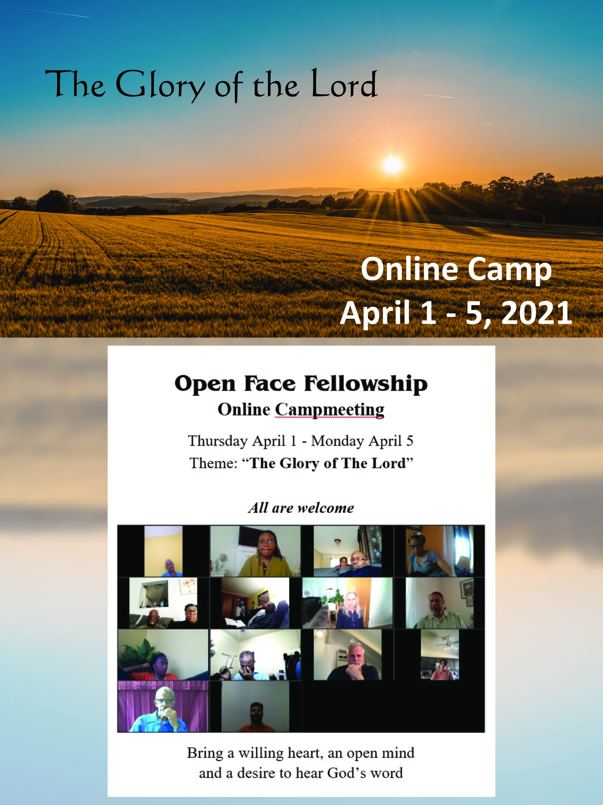 Sabbath service - 10.30 am & 3.30 pm central time (EST) (USA) Organizer: Open Face Fellowship Link: https://www.gotomeet.me/DavidClayton1 Access Code: 394-792-597 Time Zone Converter